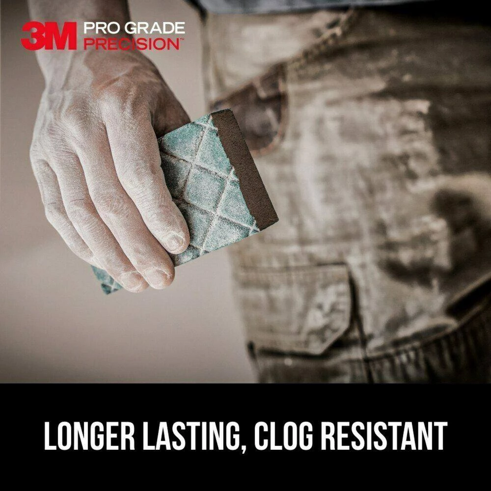 Keep dust at bay and achieve a professional finish with the 3M Pro Grade Precision Dust Channeling Single Angle Sanding Sponge. The innovative diamond patterned side is excellent for sanding smaller details and it channels dust away from your surface. Sand away imperfections on flat surfaces with the flat side, and when you need to get into tight crevices and corners, the angled side gets the job done. Crafted with ultra durable foam with premium minerals, this sanding sponge helps you with your toughest jobs and can be reused. This sanding sponge lets you grasp the sponge firmly for ultimate control. Whether you are sanding wainscoting or an antique chair, choose the 3M Pro Grade Precision Dust Channeling Single Angle Sanding Sponge for powerful sanding and versatility.