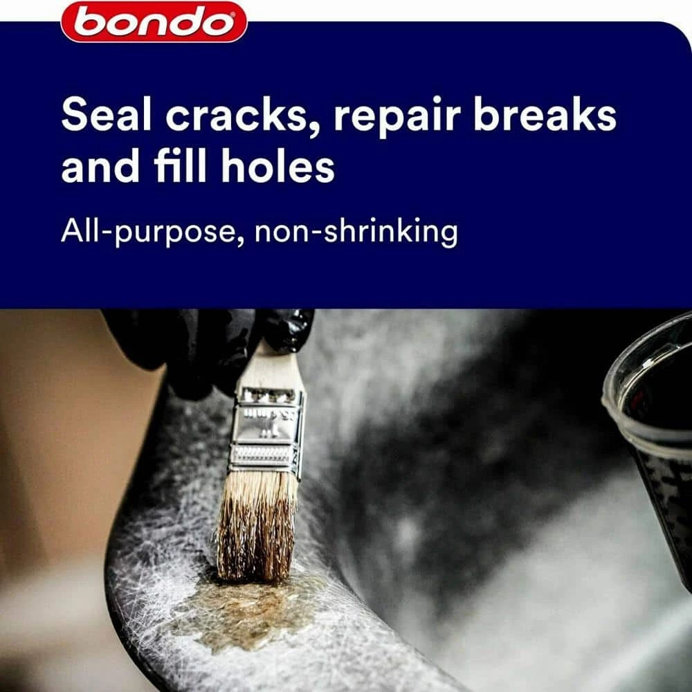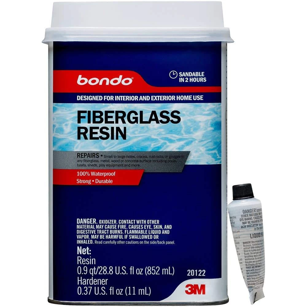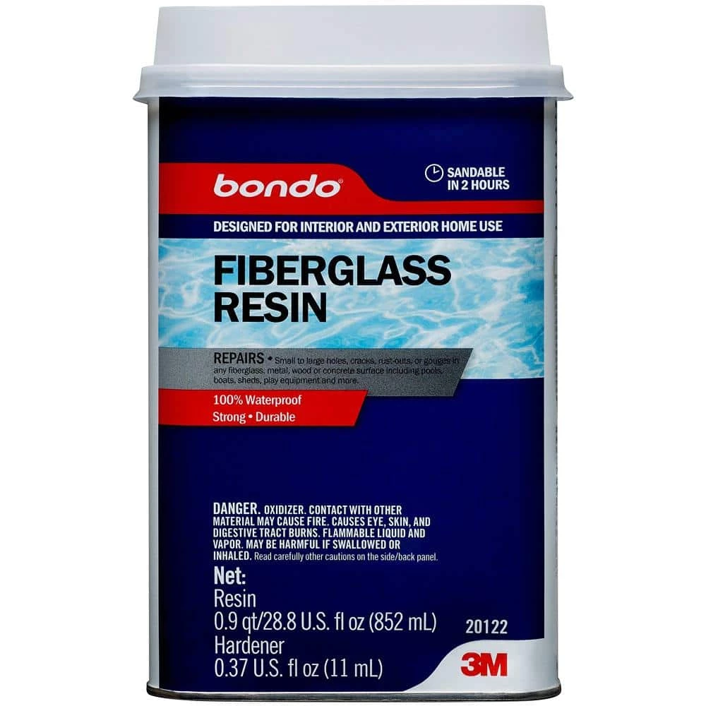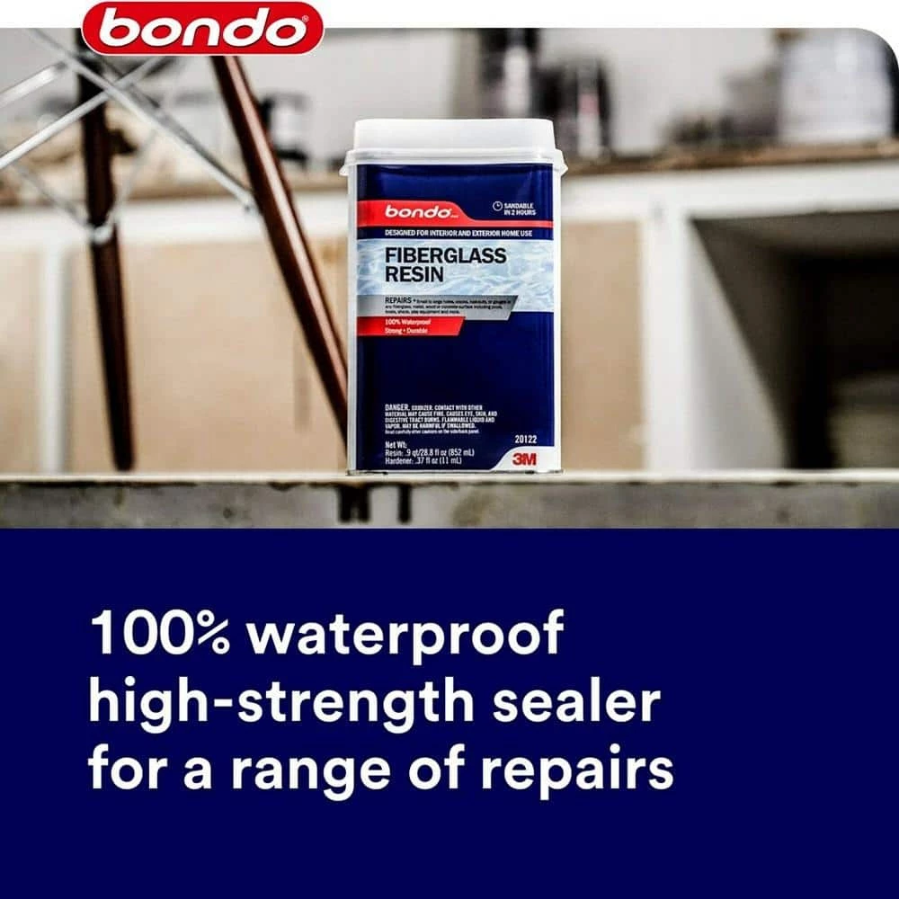 Bondo All-Purpose Fiberglass Resin is your go-to material for sealing cracks, repairing breaks or filling holes in fiberglass, wood, concrete or metal. Along with cloth tape or matting, this 100% waterproof resin can be used for hundreds of repair projects to include cars, trucks, pools, showers, boats and more. This waterproof, 2-part resin includes liquid hardener.