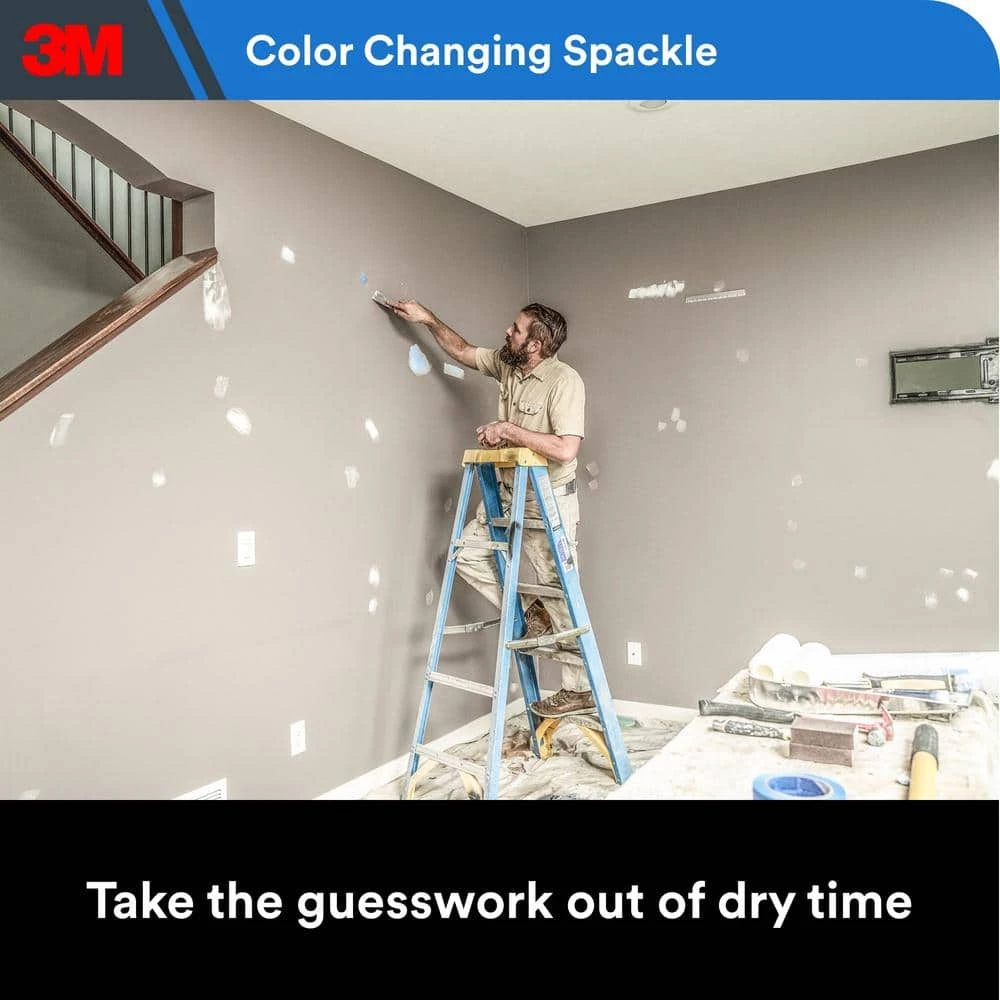 3M High Strength Color Changing Wall Repair goes on blue and dries white helping identify when a repaired surface is dry and ready to be sanded and painted. Eliminate the guesswork and reduces the chance of errors. It’s ready-to-use formula dried quickly and provides professional-looking repairs.