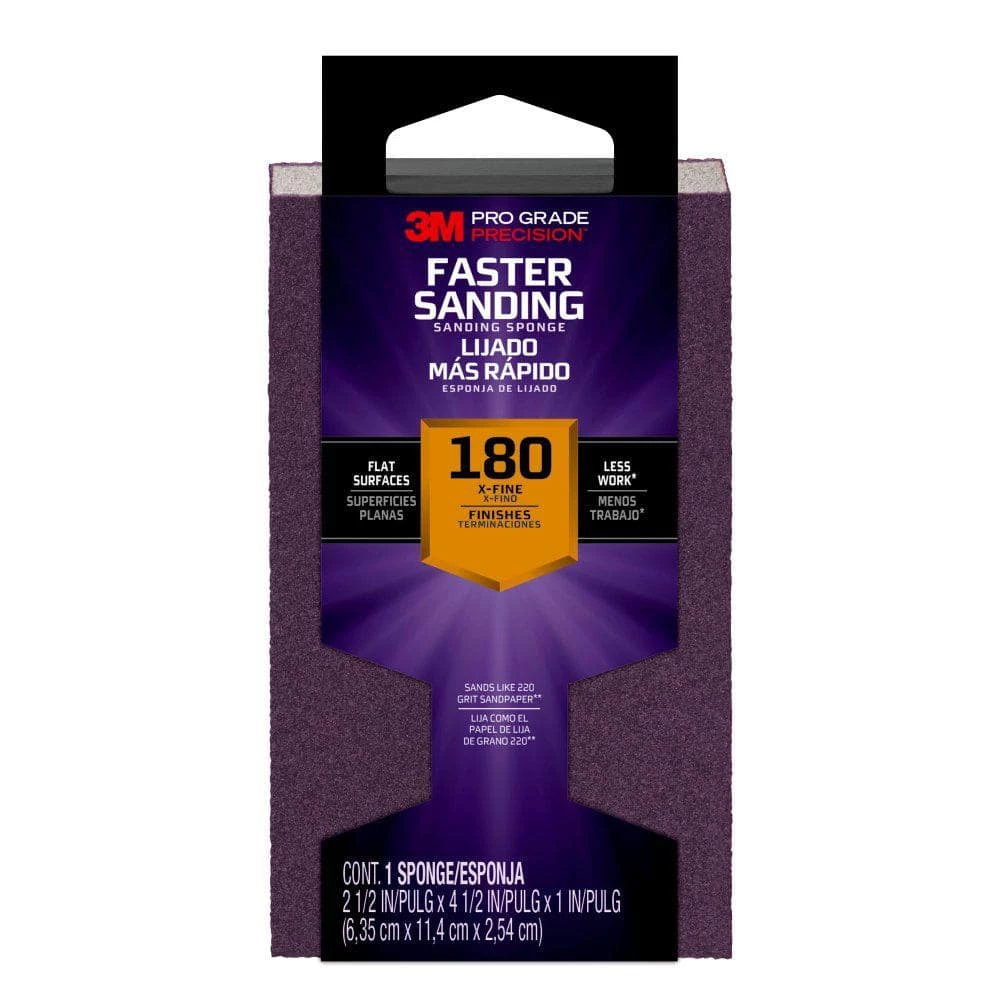 Comfortable, powerful-the 3M Pro Grade Precision Faster Sanding Block Sponge delivers a great sanding experience in the palm of your hand. This durable sanding sponge helps you get the job done fast with premium grits, and the pliable design lets you get into hard to reach places. A unique coating resists clogging for long use, and this sanding sponge is perfect for wet or dry sanding. When your job is complete, simply rinse the sponge and reuse it. Get a professional result with the 3M Pro Grade Precision Faster Sanding Block Sponge.