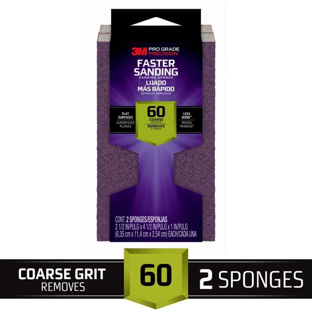 Comfortable, powerful – the 3M pro grade precision faster sanding block sponge delivers a great sanding experience in the palm of your hand. This durable sanding sponge helps you get the job done fast with premium grits, and the pliable design lets you get into hard to reach places. A unique coating resists clogging for long use, and this sanding sponge is perfect for wet or dry sanding. When your job is complete, simply rinse the sponge and reuse it. Get a professional result with the 3M pro grade precision faster sanding block sponge.
