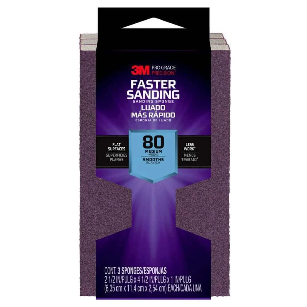 Comfortable, powerful-the 3M Pro Grade Precision Faster Sanding Block Sponge delivers a great sanding experience in the palm of your hand. This durable sanding sponge helps you get the job done fast with premium grits and the pliable design lets you get into hard to reach places. Resists clogging for long use this sanding sponge is perfect for wet or dry sanding. When your job is complete, simply rinse the sponge and reuse it. Get a professional result with the 3M Pro Grade Precision Faster Sanding Block Sponge.