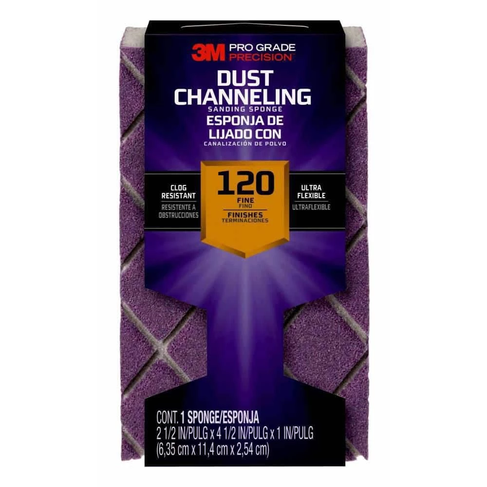Keep your surface clean as you hand sand with the 3M Pro Grade Precision Dust Channeling Sanding Block Sponge. Featuring innovative channels on one side and a flat surface on the other, this two in one sanding sponge is great for detail work and flat sanding. Made with premium minerals and ultra durable foam, this sanding sponge lasts one job to the next and lets you easily control the direction you are sanding. An innovative coating helps reduce clogging, and you can rinse the sponge and reuse it. Tell extra dust to take a hike and reach for the multitasking power of the 3M Pro Grade Precision Dust Channeling Sanding Block Sponge.