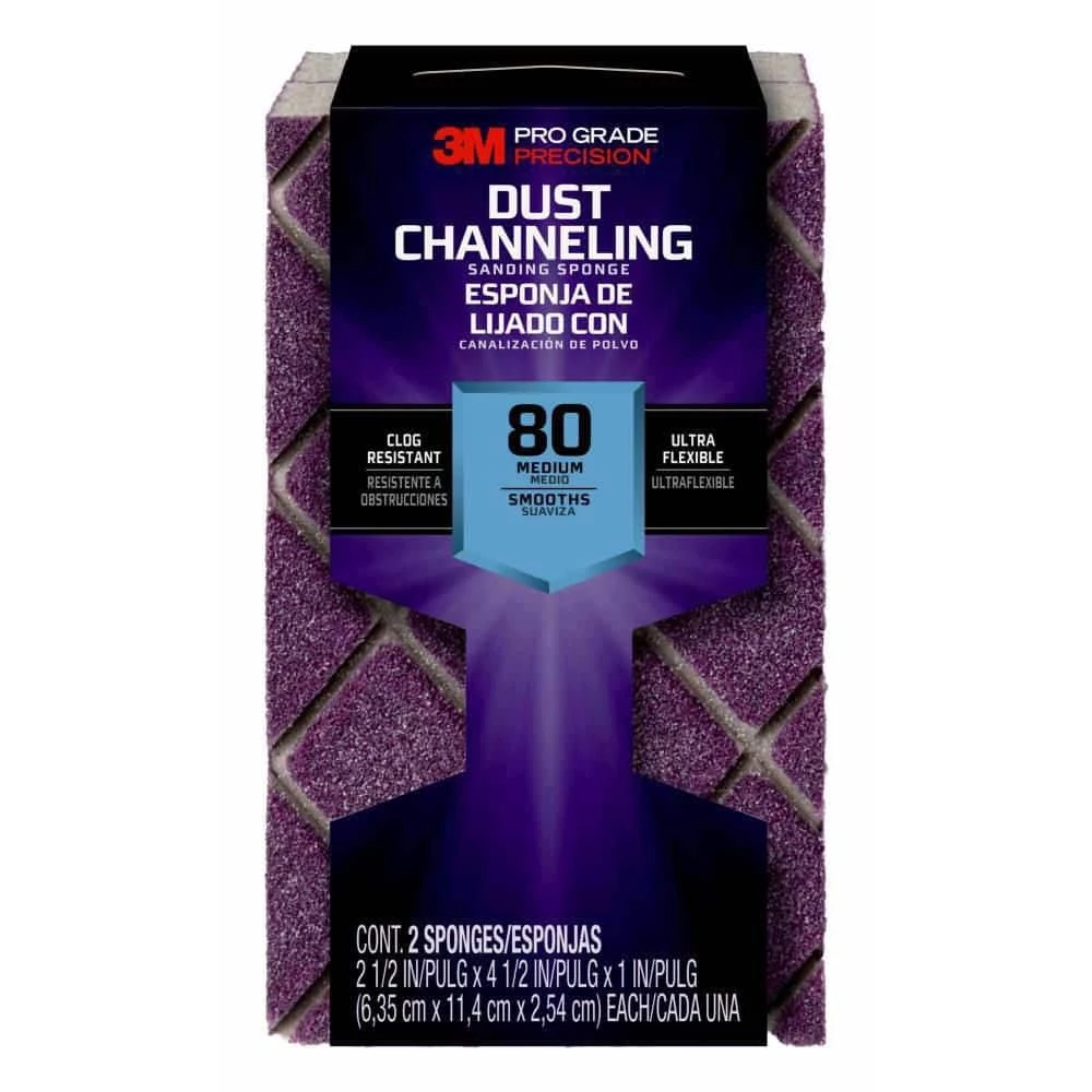 Keep your surface clean as you hand sand with the 3M Pro Grade Precision Dust Channeling Sanding Block Sponge. Featuring innovative channels on one side and a flat surface on the other, this two in one sanding sponge is great for detail work and flat sanding. Made with premium minerals and ultra durable foam, this sanding sponge lasts one job to the next and lets you easily control the direction you are sanding. An innovative coating helps reduce clogging, and you can rinse the sponge and reuse it. Tell extra dust to take a hike and reach for the multitasking power of the 3M Pro Grade Precision Dust Channeling Sanding Block Sponge.