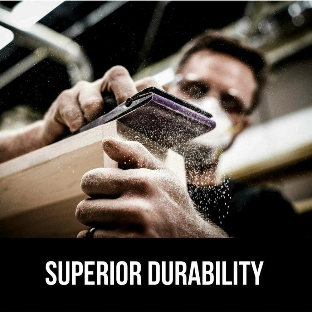 1-Sanding Performance. 3M Pro Grade Precision Faster Sanding Sheets with enhanced mineral technology resist clogging and sand faster. Fold once and the NO-SLIP GRIP durable backing grips together to prevent slipping so you can sand longer with less hand fatigue. Superior cut durability-from start to finish. For when endurance matters.