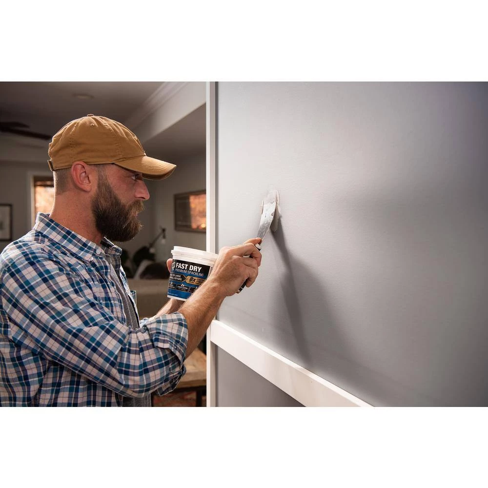 DAP Fast Dry Spackling is an innovative, professional-grade spackling compound that allows you to finish 8X faster than traditional heavyweight spackling compounds. It’s uniquely formulated to provide strength and durability like a traditional heavyweight spackling while drying fast to allow you to paint in as little as 15 minutes. It’s ready-to-use, smooth formula spreads easily and won’t sink, shrink or crack, filling even the largest of drywall repairs in one coat.