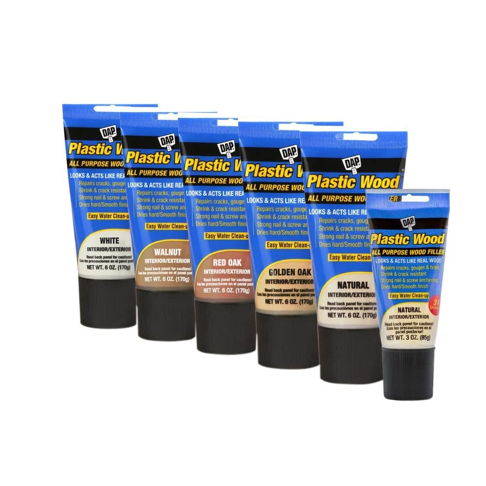 DAP Plastic Wood Professional Wood Filler is Fast, Strong and Easy to use. This high performance, heavy-duty, solvent-based wood filler hardens to give a surface and body that looks and acts like real wood. Ideal for filling and repairing nail holes, gouges, gracks, scratches and imperfections on any wood surface. Plastic Wood Solvent can also be stained.