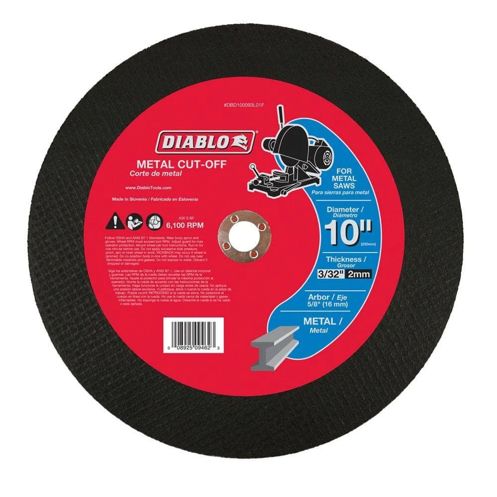 Diablo’s 10 in. x 3/32 in. x 5/8 in. Metal Cut-Off Disc provides superior performance and increased productivity. Featuring an aluminum oxide blend, the disc quickly grinds through material and offers an extra-long grinding life. Fully reinforced for hand-held grinding work, it is ideal for working in hard-to-reach areas.