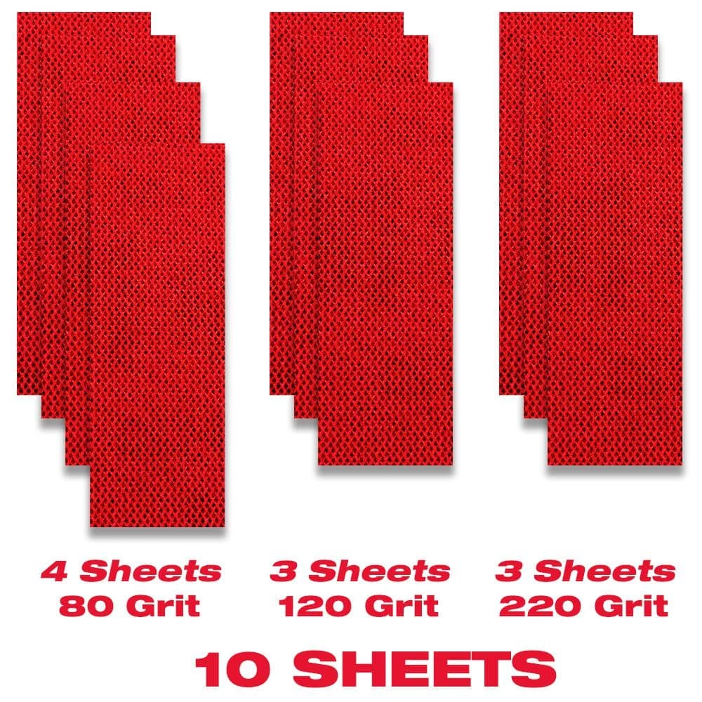 - Includes (3) 120-grit/medium sheets for moderate stock removal and sanding preparation before paint