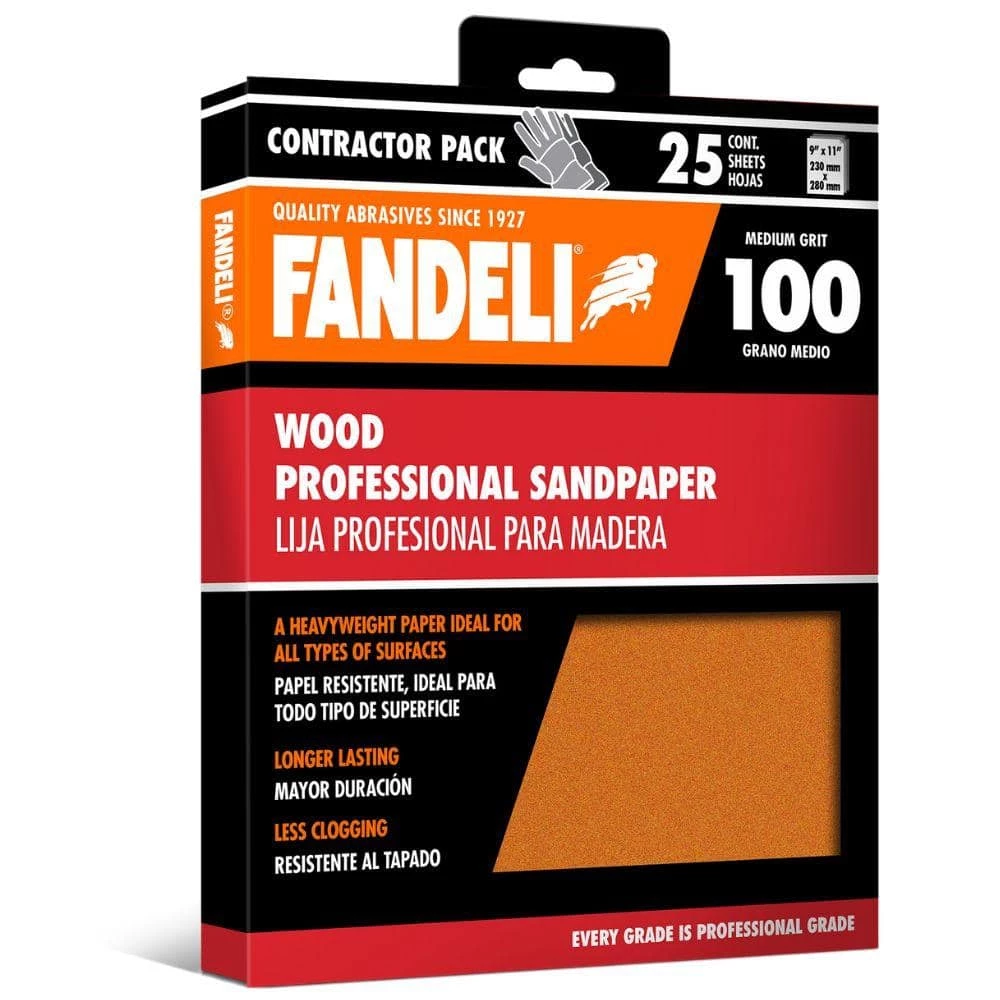 Achieve a consistent, smooth finish with Fandeli long lasting sandpaper. Use fewer sheets, with less waste and less effort. 100 medium grit professional sandpaper, 9 in. x 11 in. sheet. Contractor pack contains 25 sheets.
