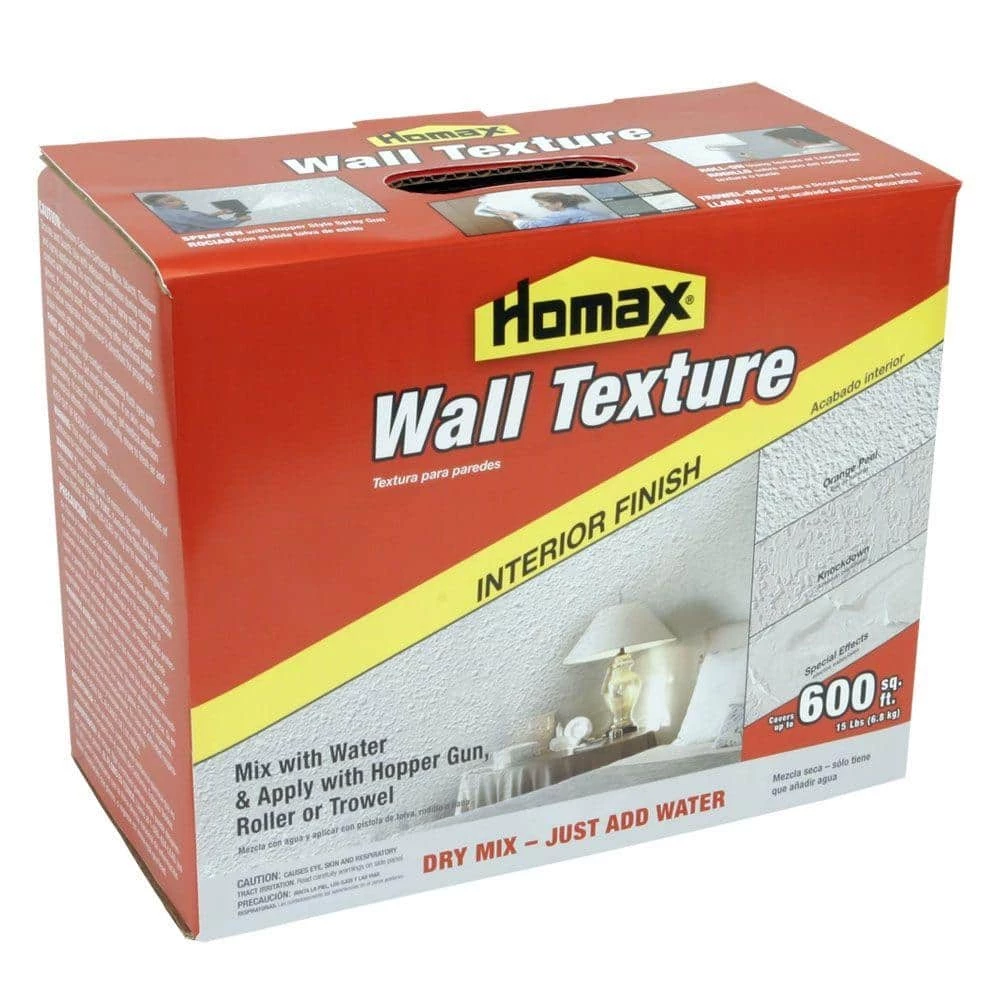 Create a variety of textured finishes for your interior walls with this Homax Products Inc. 15 lbs. Dry Mix Wall Texture. Simply add water to the mix then spray, roll or trowel onto surfaces to add decorative finishes, such as orange peel splatter, knockdown, swirls and grass. This mix will cover up to 600 sq. ft.