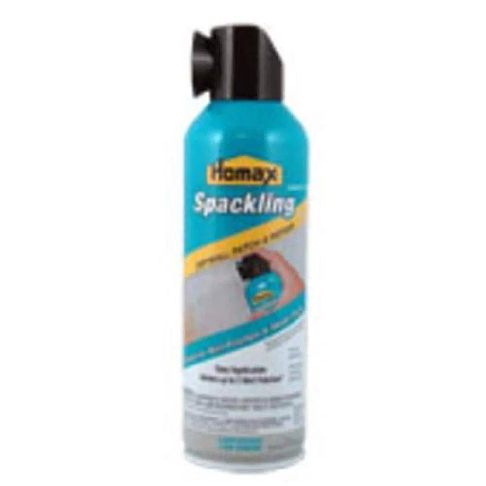 Homax makes it easy to patch and repair holes with less mess. The New Homax Spray Spackling has an Innovative Dispensing System that allows for even spray and easy build of spackling material. The easy-to-hold can has an ergonomic actuator with a wide and flat push button that is easy to operate. Homax Spray Spackling also features an improved formulation. The unique compound blend provides a smooth, less visible patch compared to heavy vinyl spackling compounds. It’s easier to feather (requires only a knife) versus traditional spackle. Repair drywall holes, cracks and gouges. Homax Spray Spackling is sandable, paintable and won’t dry out in the can, so it’s always ready for your next project. One 8 oz. can covers two 4 in. x 4 in. patches.