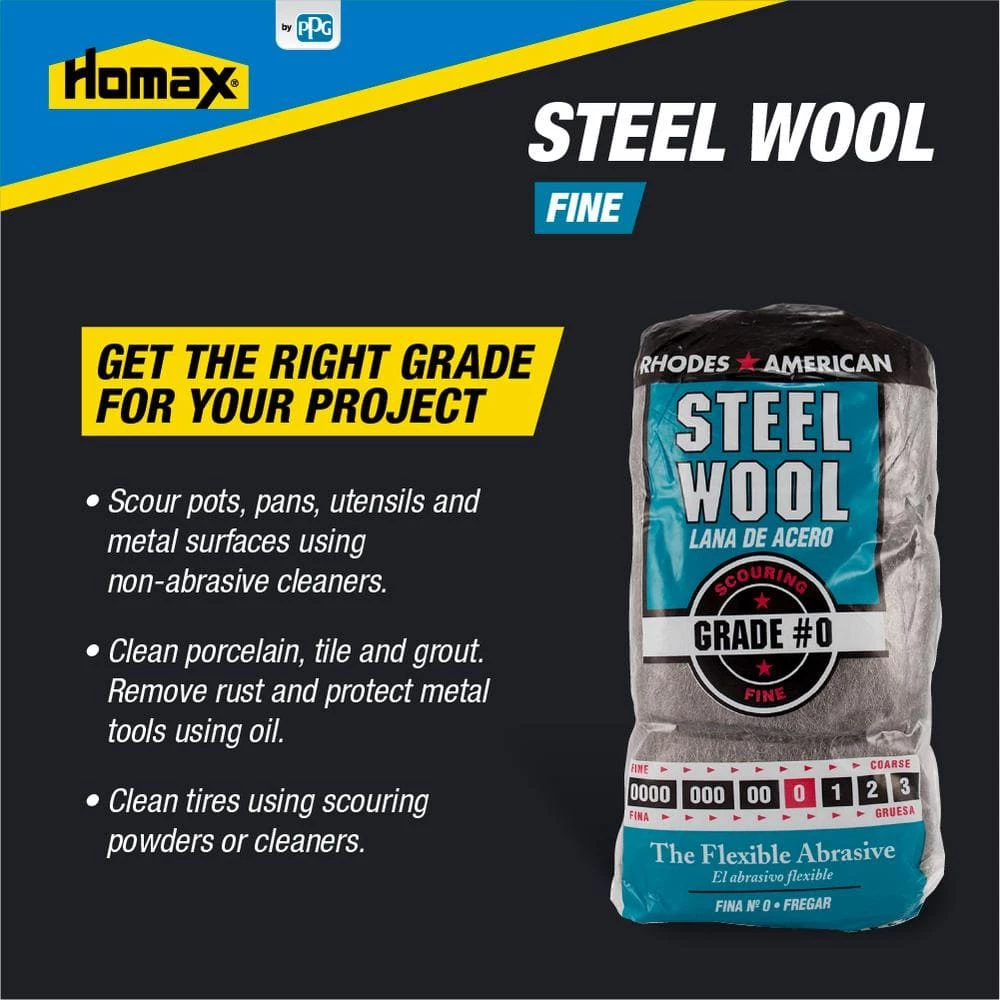Grade #0 Steel Wool is a flexible abrasive with a variety of uses. This product helps clean rough metals and stones as well as removes final paint residue when staining. Each bag contains 12 pads for multiple uses.