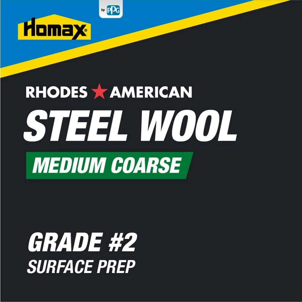 The Homax Products Grade #2 Medium Coarse Steel Wool Pads (12-Pack) can be used for polishing, cleaning and refinishing surfaces. It helps remove paint from molding and corners and old wax and scuff marks from floors. Each bag contains 12 pads for multiple uses.