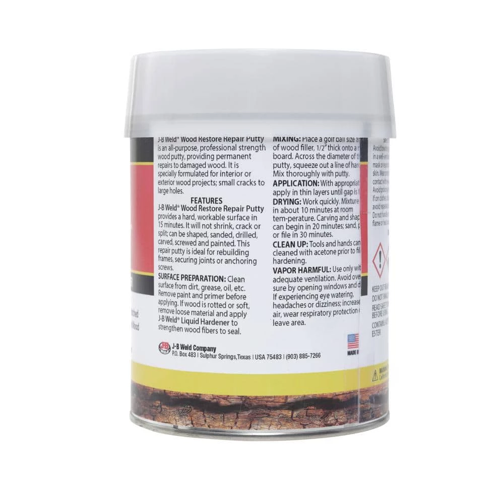 J-B Wood Restore Repair Putty Wood Filler provides a permanent repair to damaged and rotted wood. J-B Wood Fillers professional strength formula is ideal for interior and exterior wood projects. Ideal for rebuilding frames, securing joints or anchoring screws.