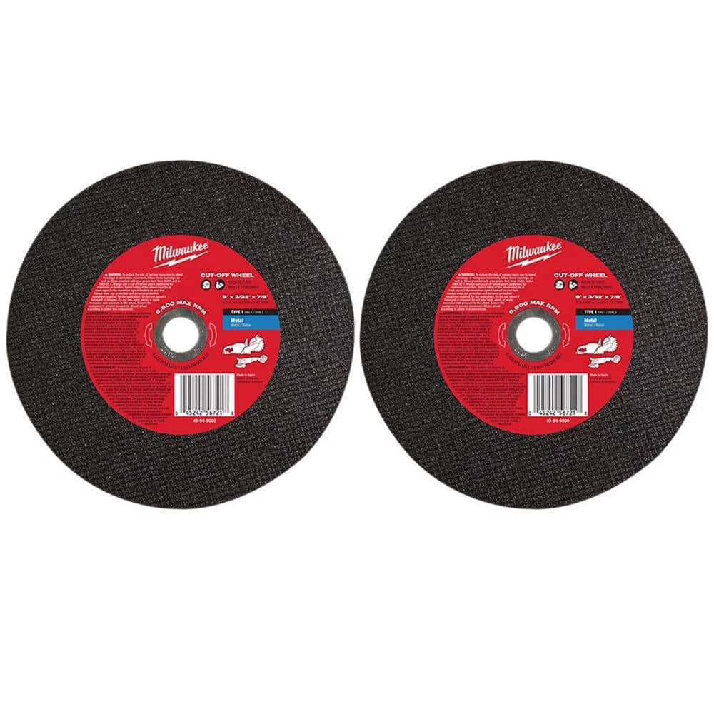 Milwaukee 9 in. x 3/32 in. x 7/8 in. Type 1 Metal Cut-Off Wheel (2-Pack)