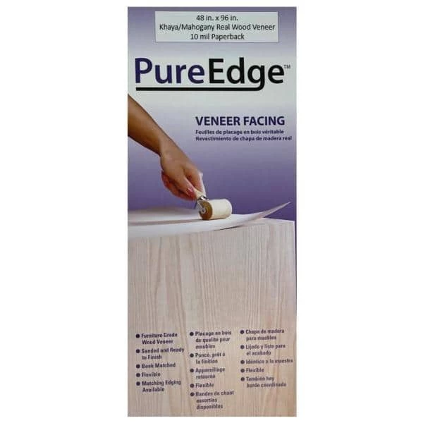 PureEdge 48 in. x 96 in. Khaya/Mahogany Real Wood Veneer with 10 mil Paperback