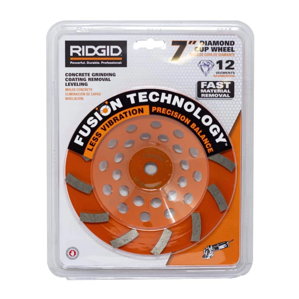 RIDGID Turbo Segment Diamond Cup Wheels are engineered with top-grade industrial diamond for maximum cutting performance and superior grinding life. These cup wheels can be used for a wide range of projects from shaping and polishing of concrete surfaces and floors, to fast aggressive concrete grinding or leveling and coating removal. Heavy-duty steel core offers lasting durability. Cup wheel will fit 7 in. angle grinders with a 5/8-11 threaded arbor. Suitable for both dry or wet cutting conditions.