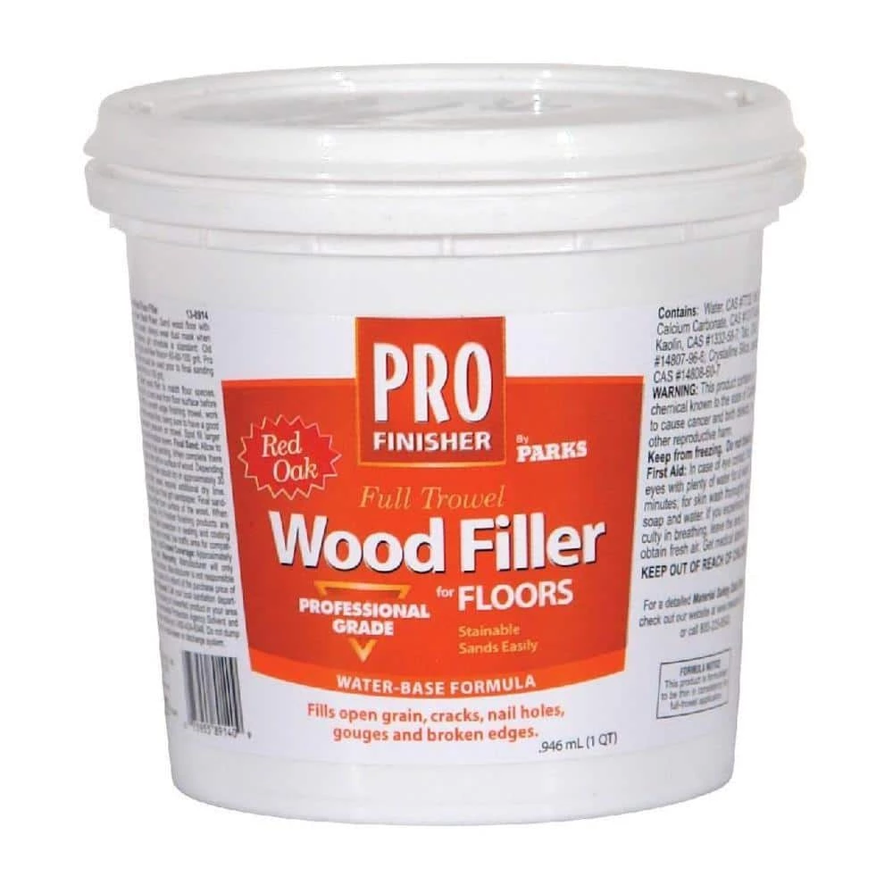 Parks 1 qt. Red Oak Pro Finisher Wood Filler is a latex-based wood filler designed to enhance the feel and look of your hardwood floor. Thin trowelable coat fills small cracks, nail holes, gouges, broken edges and opening grain of unfinished oak resulting in a furniture-like finish. Pre-shaded for red oak and white oak.