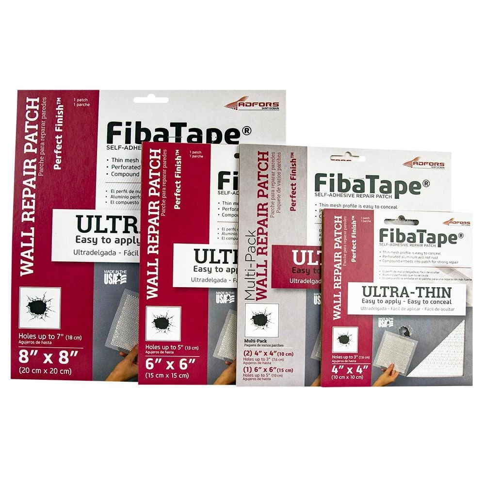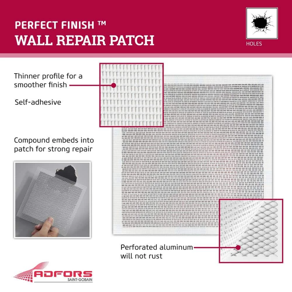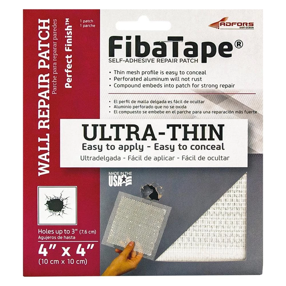 FibaTape Perfect Finish Ultra-Thin Wall and Ceiling repair patches are the ideal solution for permanently repairing damaged drywall or plaster. The perforated aluminum patch and fiberglass reinforcement layer provide added strength for a permanent repair. The self-adhesive design allows for easy installation and finishing. Patches can be used on walls or ceilings and will not sag or rust.