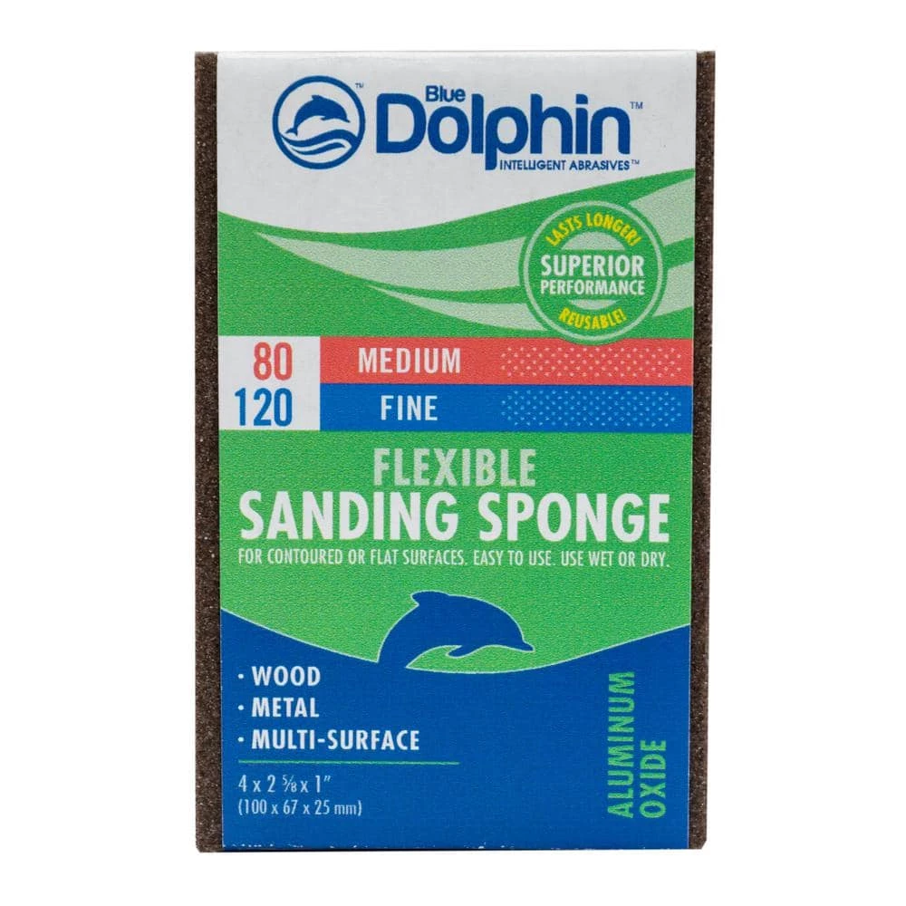 The BLUE DOLPHIN Dual Grit Sanding Sponge is ideal for smaller patch and repair projects. You get the same high quality abrasives as standard sheets, but the convenience of an easy-to-use sponge. 2 sanding grits on 1-sponge means that both first and final sanding can be done with the same tool. This sponge can be rinsed and reused.
