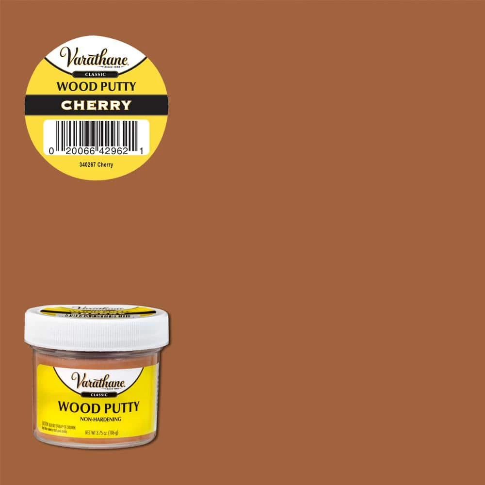 Varathane 3.75 oz. Cherry Wood Putty is designed to fill nail holes and minor defects on interior wood surfaces. Use to touch up imperfections in wood furniture and wood surfaces following assembly and finishing. Quick, no mess wood putty applies easily and will not shrink over time.