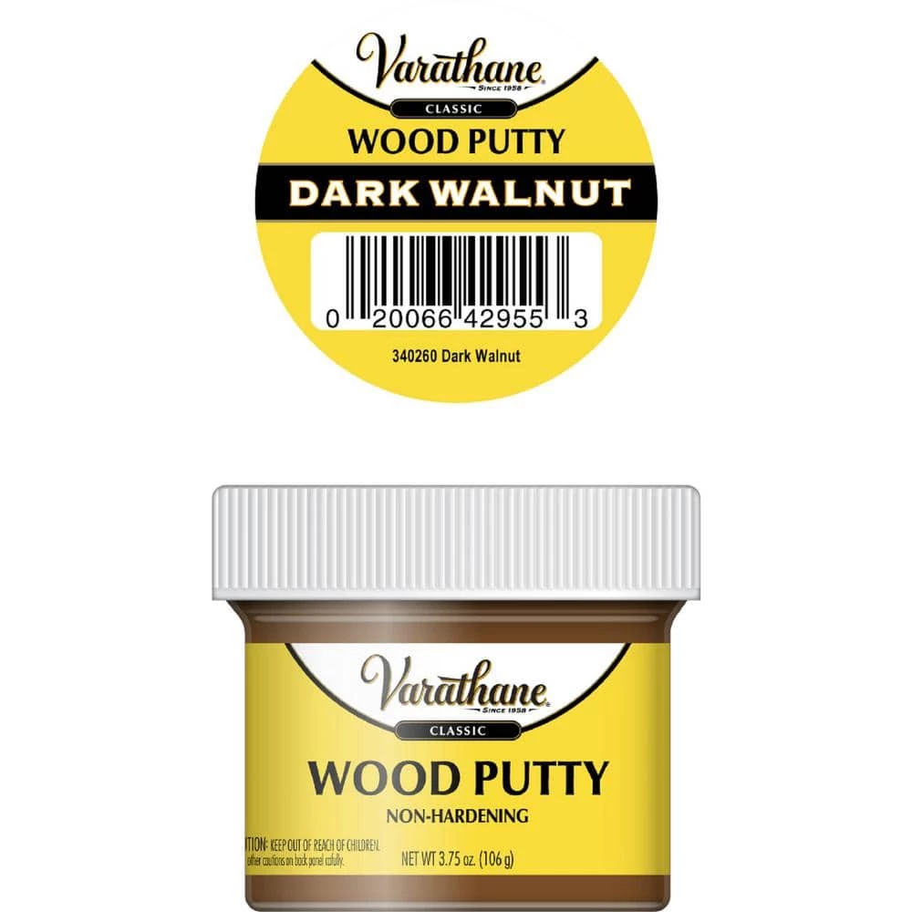Varathane 3.75 oz. Dark Walnut Wood Putty (6-Pack) is designed to fill nail holes and minor defects on interior wood surfaces. Use to touch up imperfections in wood furniture and wood surfaces following assembly and finishing. Quick, no mess wood putty applies easily and will not shrink over time.