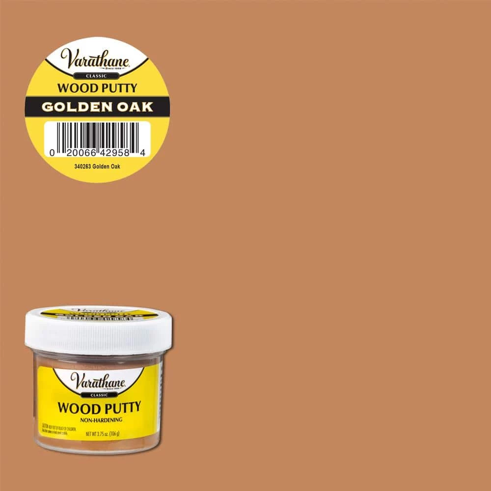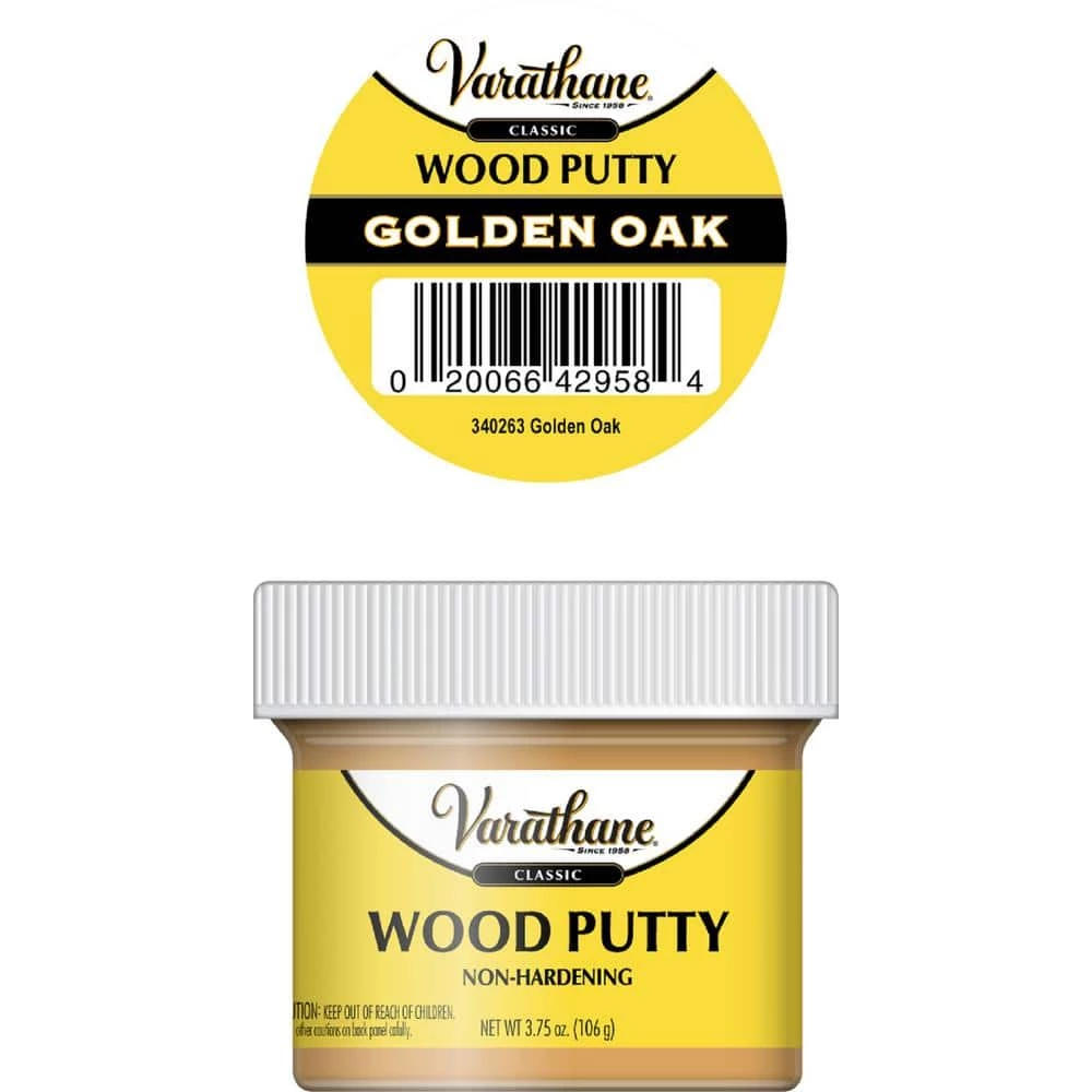 Varathane 3.75 oz. Golden Oak Wood Putty (6-Pack) is designed to fill nail holes and minor defects on interior wood surfaces. Use to touch up imperfections in wood furniture and wood surfaces following assembly and finishing. Quick, no mess wood putty applies easily and will not shrink over time.