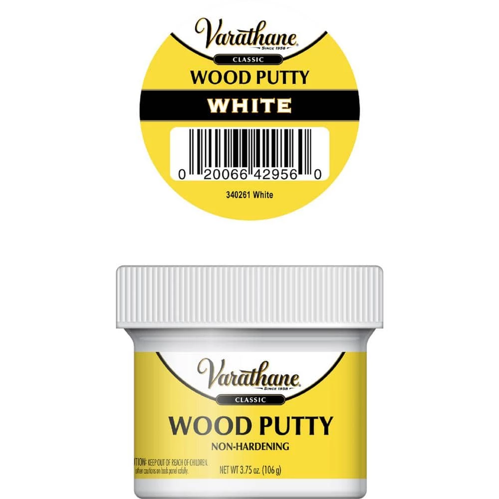 Varathane 3.75 oz. White Wood Putty is designed to fill nail holes and minor defects on interior wood surfaces. Use to touch up imperfections in wood furniture and wood surfaces following assembly and finishing. Quick, no mess wood putty applies easily and will not shrink over time.