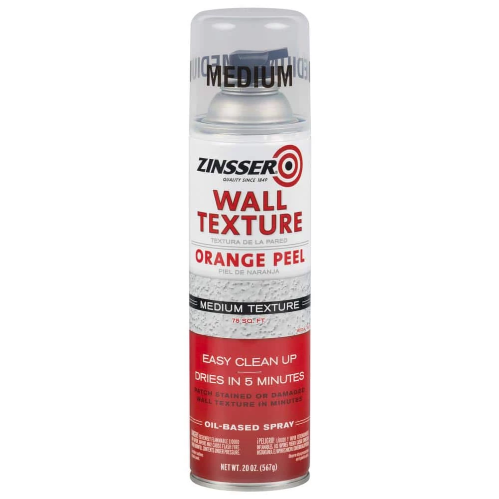 Zinsser 20 oz. Wall Texture Medium Oil-Based Orange Peel Spray (Case of 6) repairs existing wall texture or transforms flat walls or ceilings into a textured finish that reflects light adding a new element to rooms. High pressure, aerosol spray wall texture helps to patch and repair damages to “finished” textures returning them to their original condition. Repaired areas are unnoticeable. The simple, less expensive solution to repairing or creating textured surfaces.